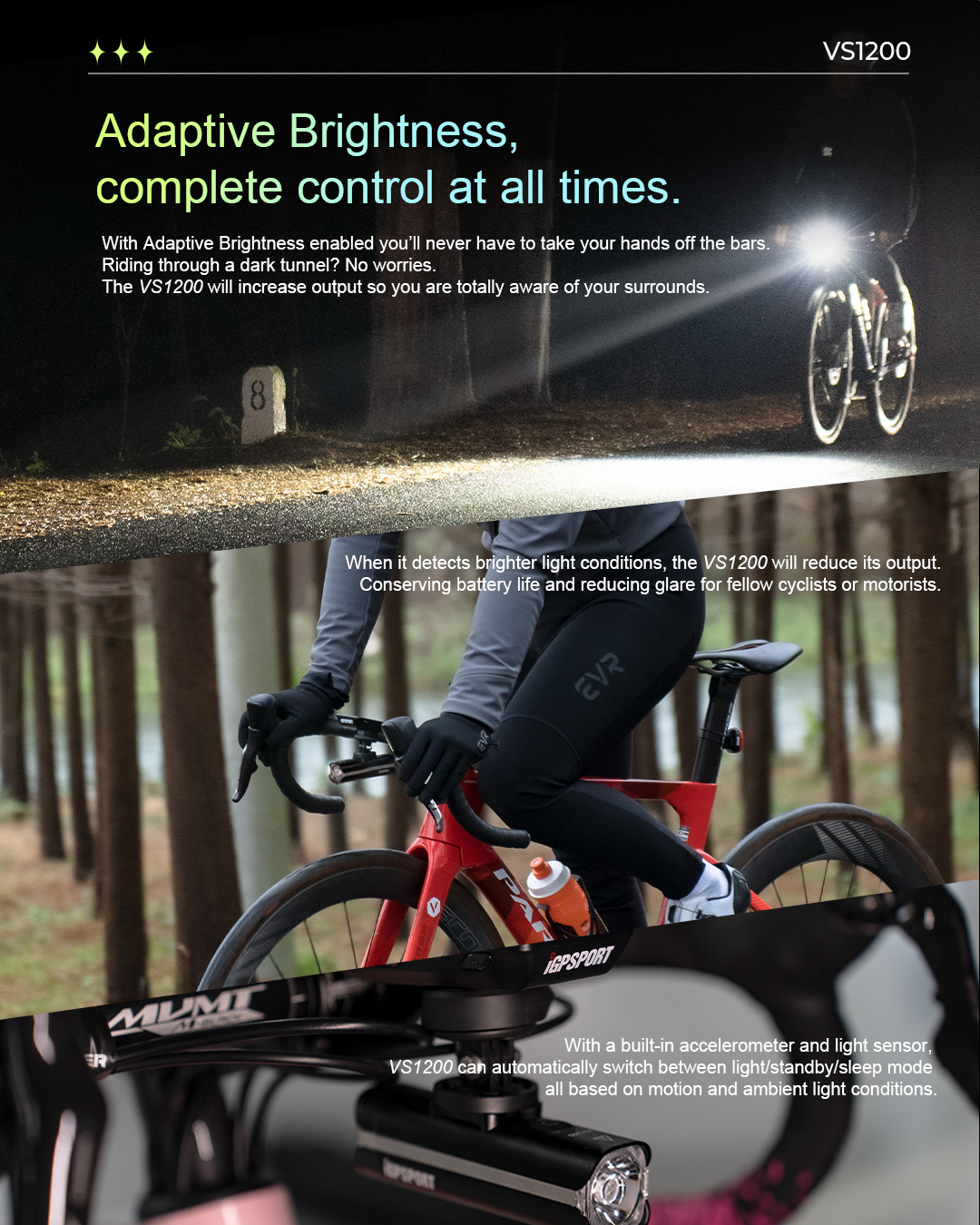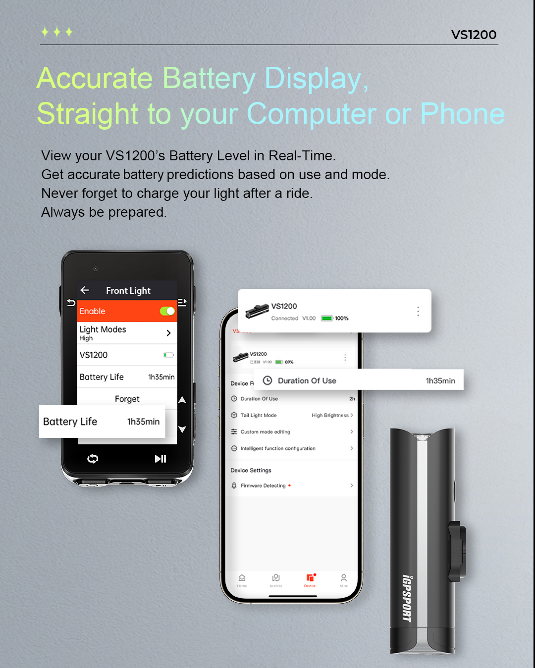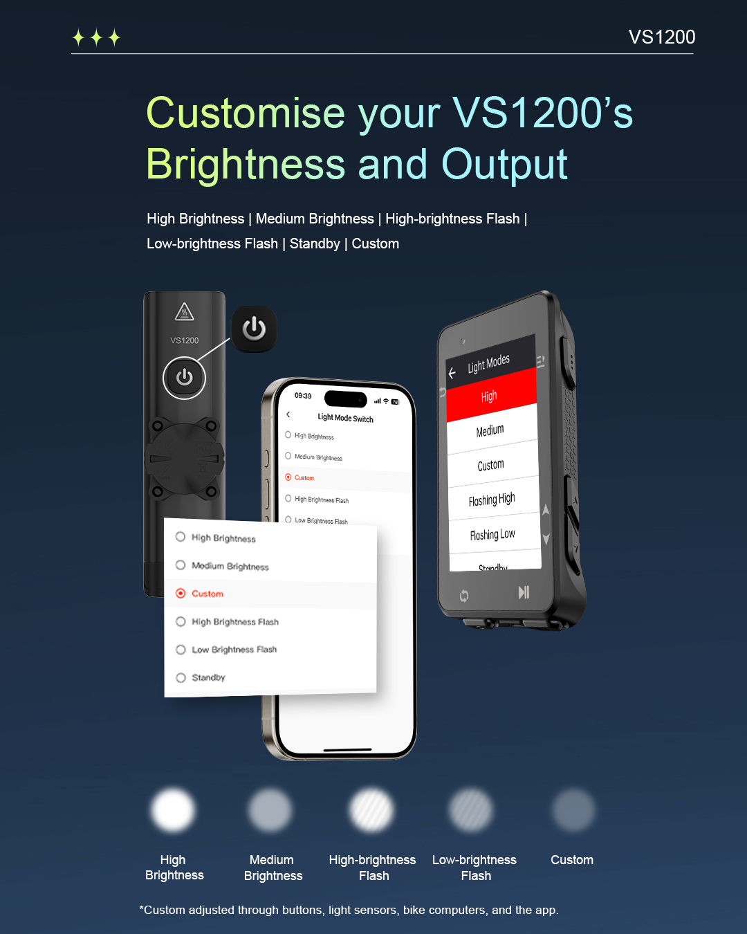 Simply pair the VS1200 with your Cycling Computer or Smart Phone to unlock a level of customisation and convenience never seen before. Such as: